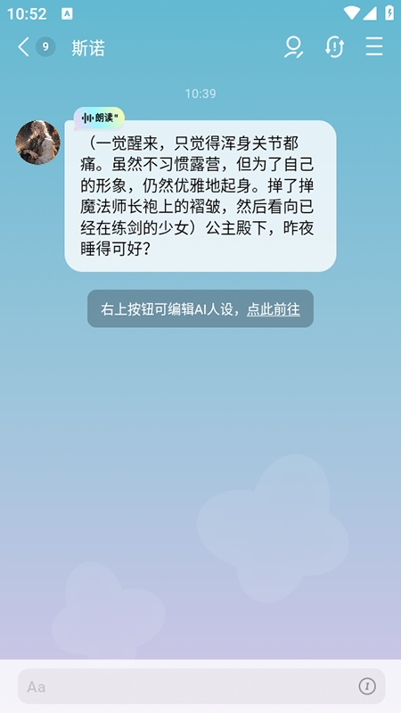 3、进入聊天界面后,点击右上按钮可编辑AI人设,设置模型、永久记忆、备注关系、背景图片等参数。4、在输入框中输入内容,即可与AI进行快速问答互动,点击AI消息可进行编辑、重答或撤回操作。