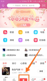 1、进入唱吧主界面,选择一首支持合唱的歌曲。