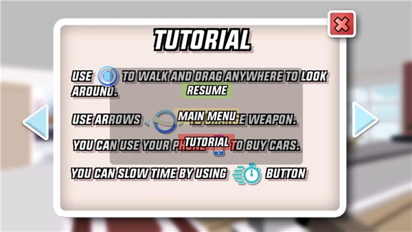 4、初次进入游戏,建议点击右上角暂停,点击教程,先仔细查看如何操作;