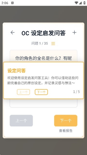 3、用户可以在OC设定回答中完善自己的OC设定;