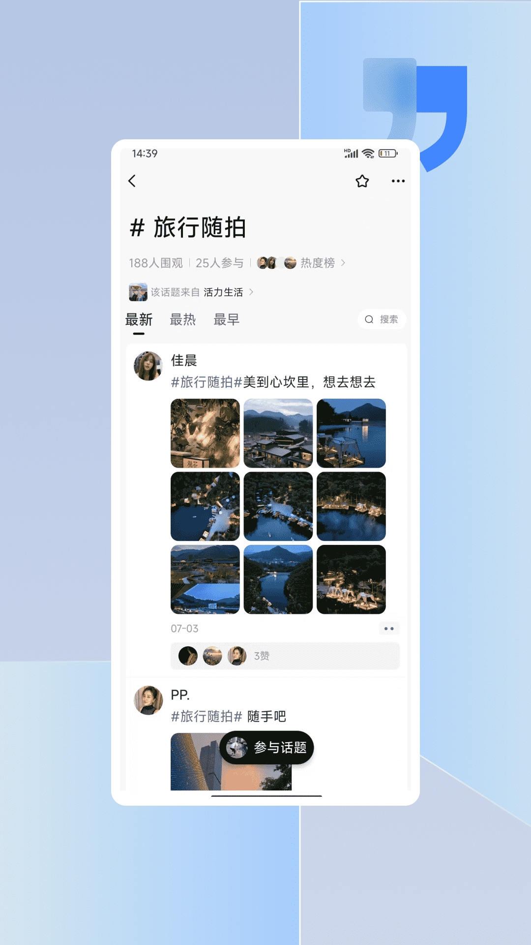 实时为用户推荐当下最热门的话题内容,用户能够参与到各类热门话题的互动讨论中。