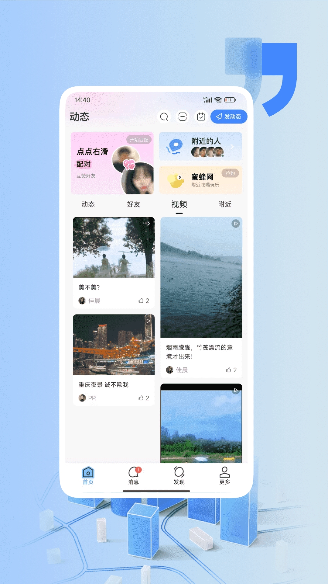 1、地图式交互:像玩游戏一样发现兴趣,滑一滑就能看到“附近 3 km有 12人在滑板岛”。