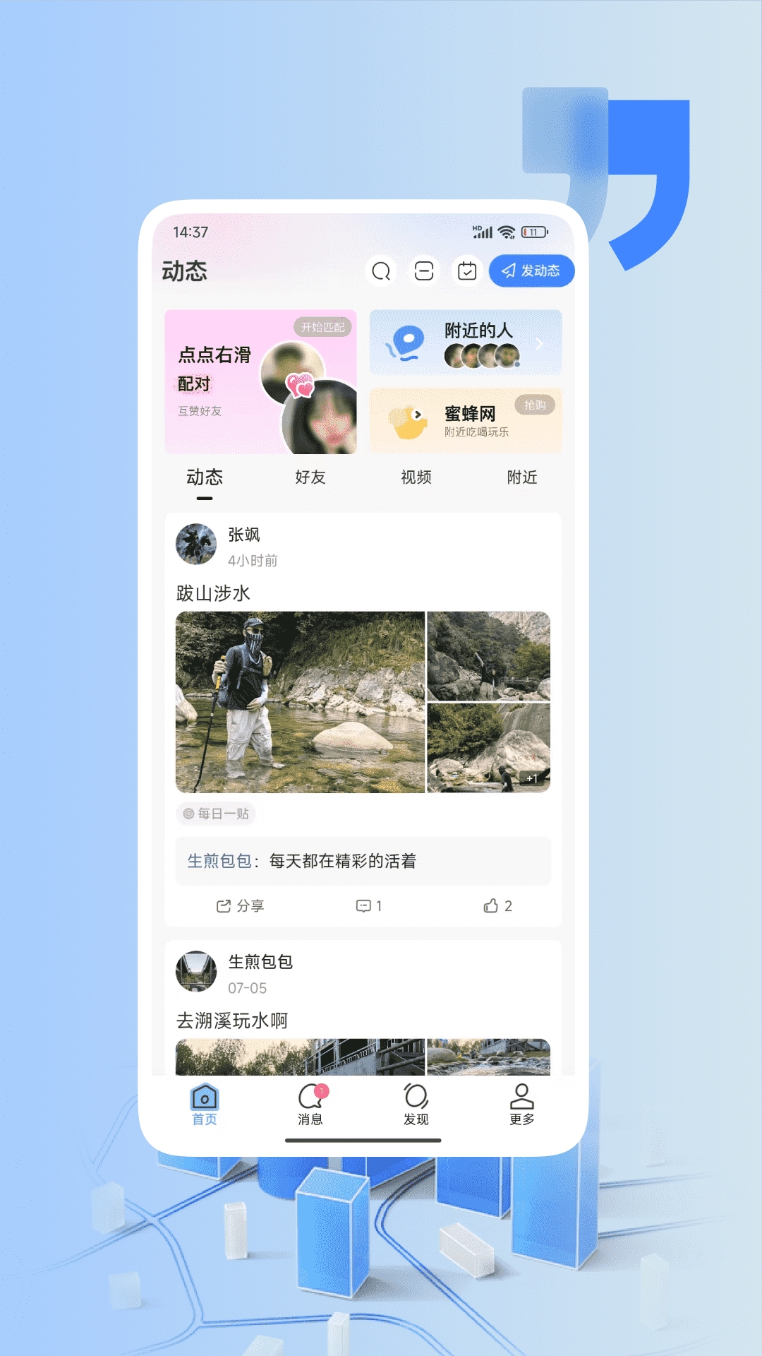 你可以在线发布自己的生活动态,发布时能够采用图文结合的形式来呈现这些动态内容。