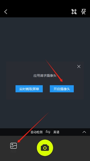 2、可通过摄像头拍摄,或从相册选取素材这两种方式开展翻译。