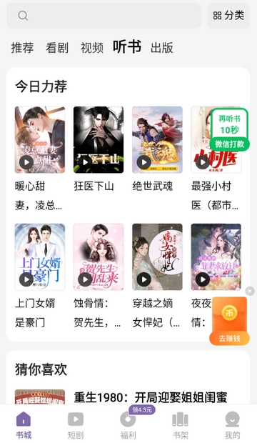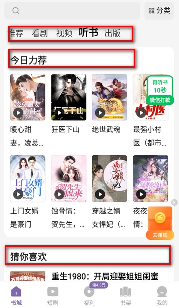 2、独特的听书专区让你体验没有文字的全新听书内容,更多内容等你发现。