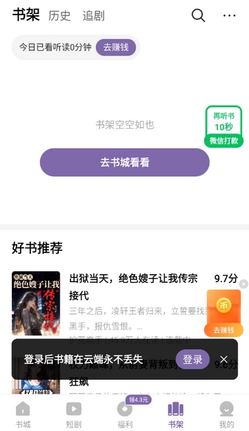 2、智能书架与同步追更:支持将作品加入个人书架,自动记录阅读/收听进度并多设备同步,及时推送关注作品的更新提醒。