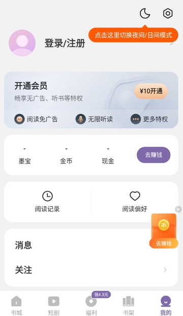 6、点击我的,登录账号后,可查看我的阅读记录等