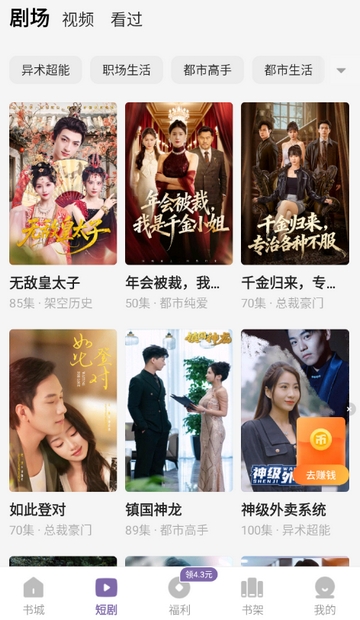 3、点击短剧,可点击感兴趣的短剧进行观看