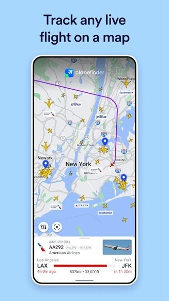 Plane Finder提供飞机航班飞行服务的应用app,户只需要来输入航班的型号即可来了解到飞机的情况,不仅具备实时追踪全球航班的强大功能,还能提供详尽的航班数据展示和独特的3d视角,可以体验超多精美的航线。