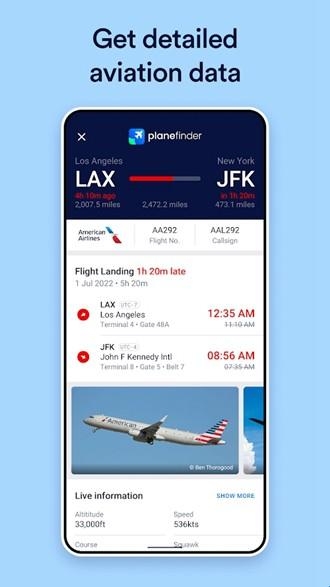 4、获取有关航班的详细信息:从飞机特性及图片到飞机的航线和时间表。