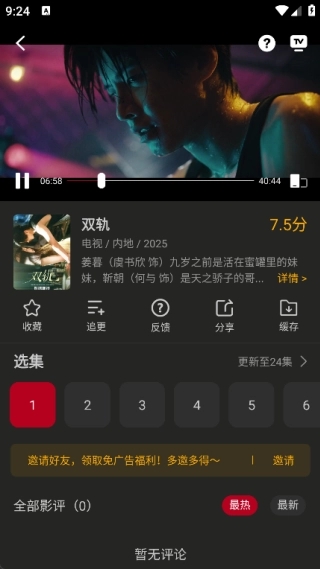 4、播放页面支持选集功能,同时你可以在该页面便捷地进行收藏、追更以及反馈等操作。