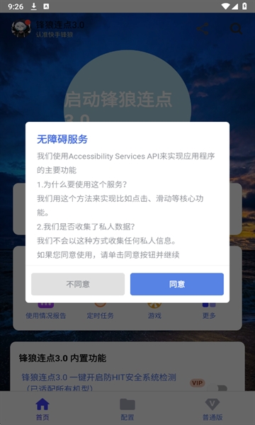 1、打开锋狼连点器,第一次打开需要同意其权限。