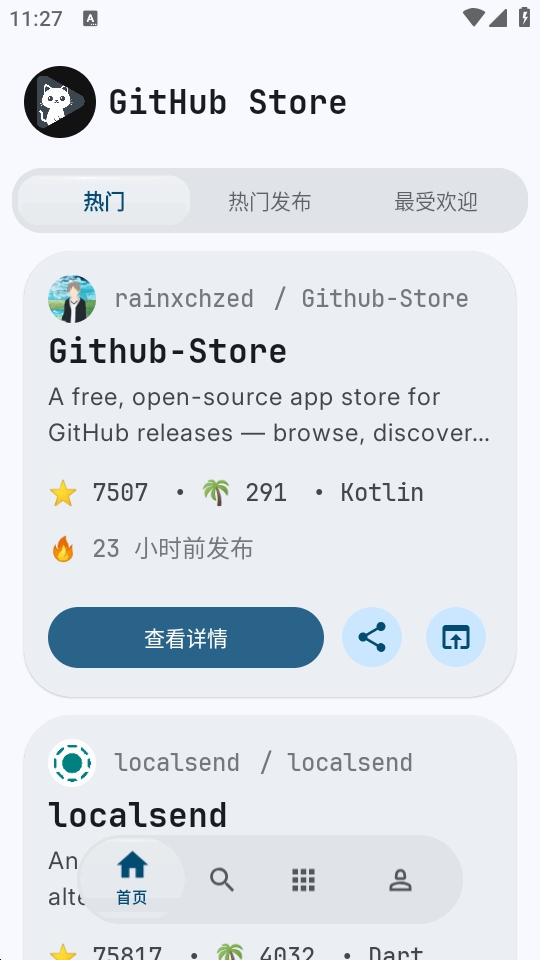 github store是一款专属于github用户的应用商店,支持官网下载,能让用户便捷浏览、安装各类GitHub应用,拥有智能发现,丰富的细节屏幕等特色,可自动下载并安装应用,无需手动处理复杂的安装步骤!