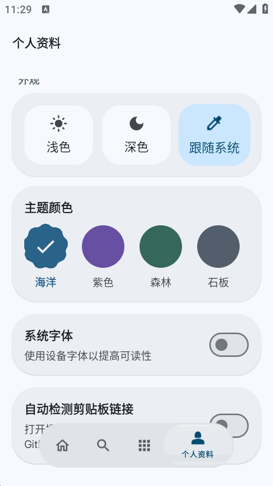 5、可根据自己的喜好设置外观,主题和字体等内容。