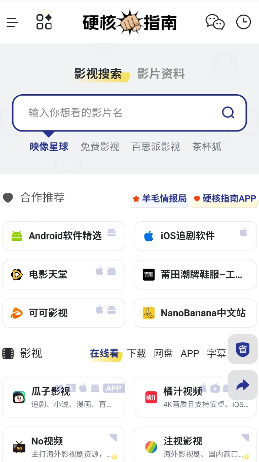 硬核指南是一款无需注册即可使用的影视导航软件,所有资源都是完全免费的,没有广告插件内容,站点类型还蛮多的,例如电影、电视剧、游戏和电子书等,有需要的用户快来下载吧!