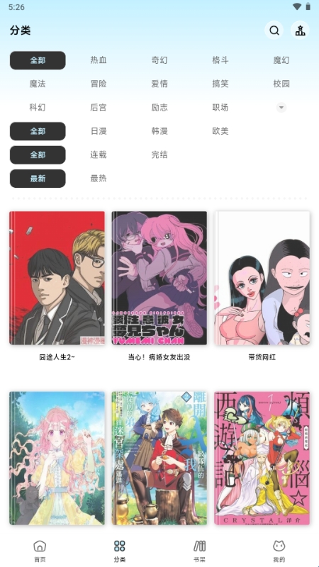 2、超级完整的分类,超级完整的漫画类型,满足每个用户想看漫画的需求。
