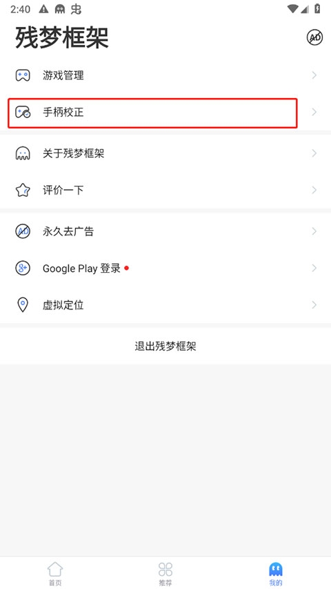 2、找到手柄矫正功能按钮进入。