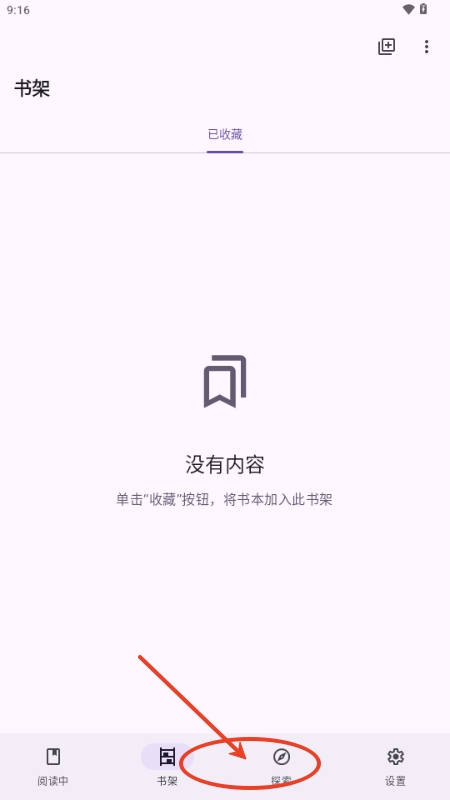 1、到达首页后点击探索小说;