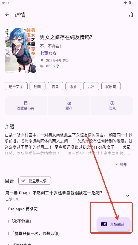 4、然后点击阅读,这样就可以顺利浏览轻小说内容了。