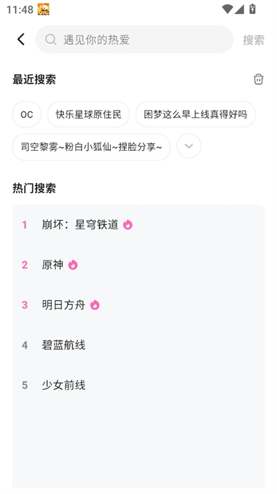 在搜索框输入关键字可以快速找到喜欢的二次元话题