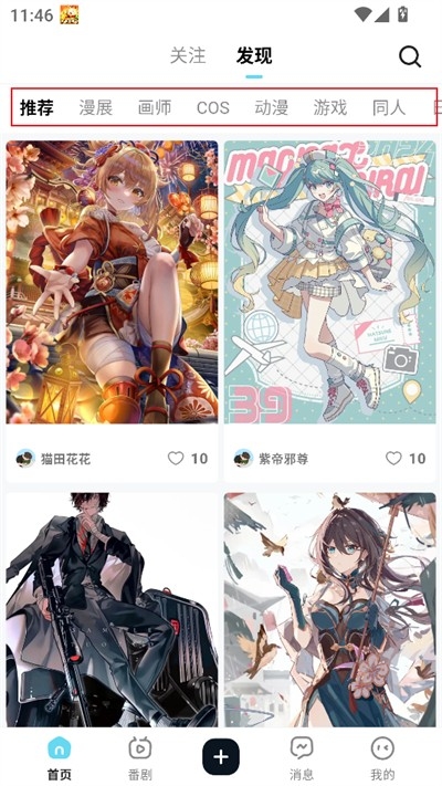 1、动漫圈里的各类板块在这里都能找到,例如游戏圈、画师圈、cos圈、同人圈等等,都应有尽有。