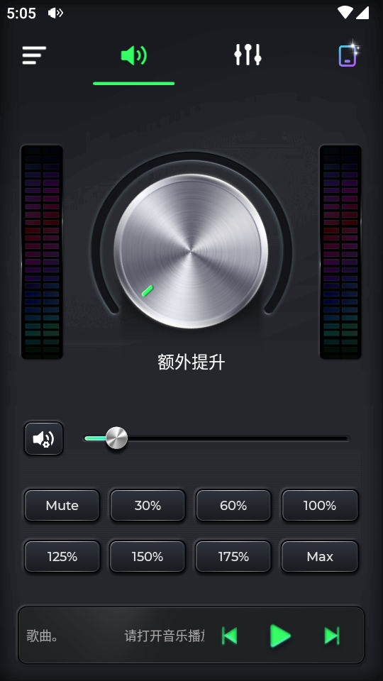 1、先打开软件后点声音的按钮,可以进入到音量额外提升。
