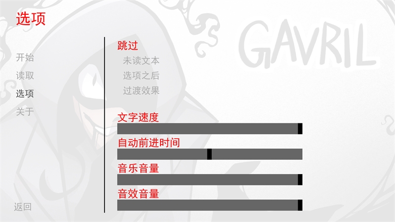 2、接下来我们可以点击设置功能,然后对文字速度,音乐音量、自动前进时间等参数进行修改调整。