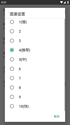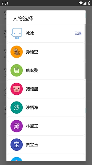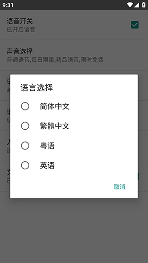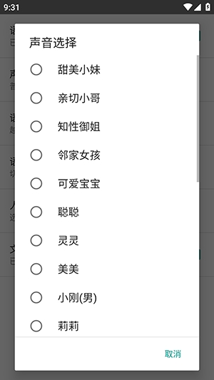 2、点击设置选项可以设置声音,语速,人物等。