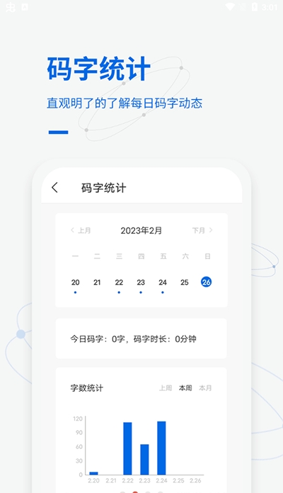 ·码字统计:支持查看字数统计、时长统计,直观了解每日码字动态