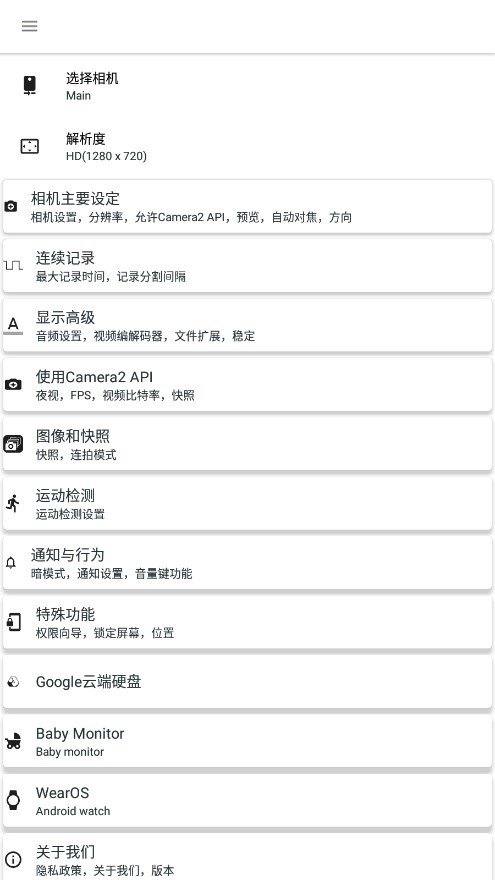 点开软件左上角的设置,就能看到丰富的功能,可以自行设置录制视频的质量、查看录制的视频、调整录制滤镜、设定录制时间等内容,具有很强的可玩性。