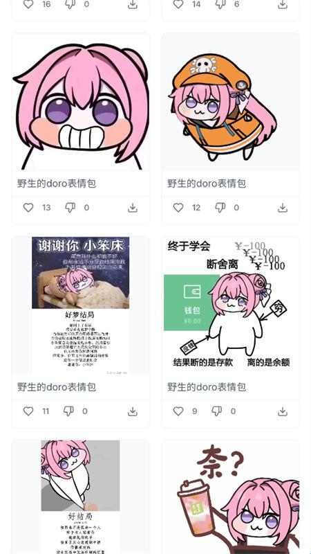 2、拥有多个 Doro的原始表情包素材,内容丰富,适合不同类型的用户使用。