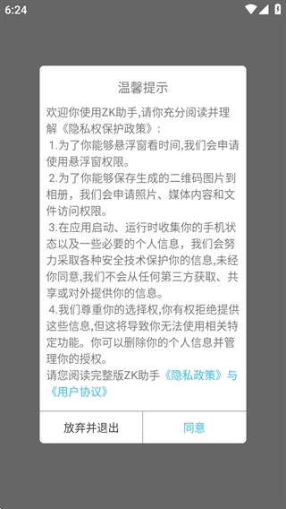 1、打开app,阅读用户隐私协议之后点击同意即可进入;