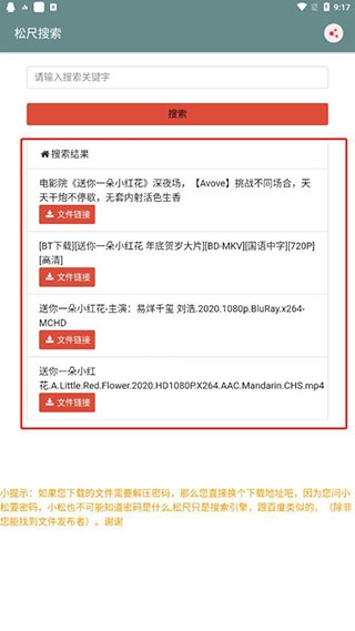 2、比如你想要送你一朵小红花的影视资源,只要将它输入在搜索框中,然后点击搜索;