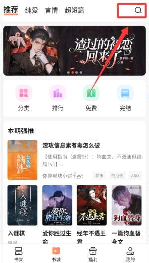 3、点击输入想看的书名名称搜索。