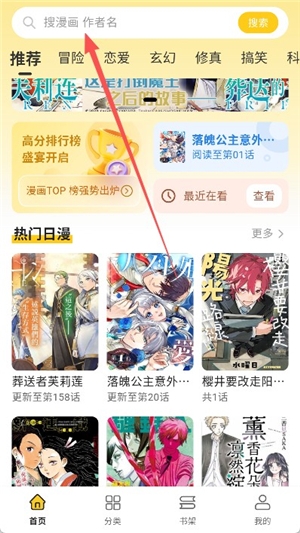 4、通过推荐、热门榜、分类专区挑选漫画,每一个专区都会不断更新。