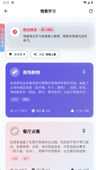 4、提供日常生活、职场商务、旅行出行等多种预设话题场景,引导用户进行针对性口语练习。