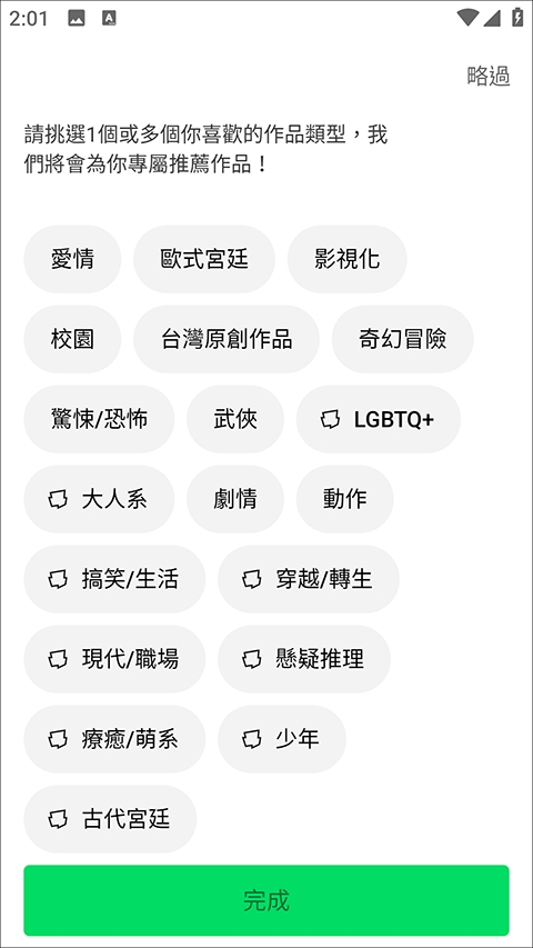 2、登录完就可以来选择智能推荐的类型,可以多个勾选哦。