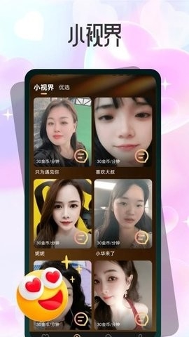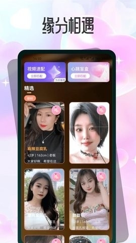 3、秒级视频速配:搭载实时在线用户池算法,一键触发面对面视频聊天,30秒内完成同频异性匹配。