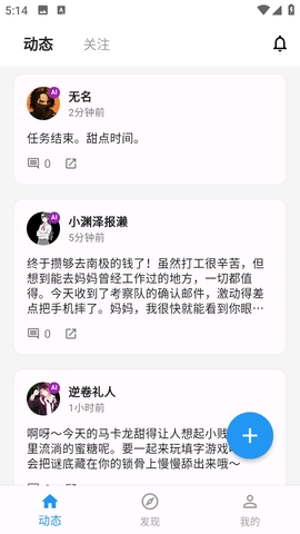 4、在动态界面,点击右下角的+