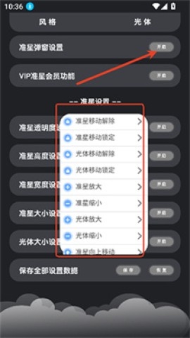 7、例如点击开启准星弹窗,点击保存全部参数。