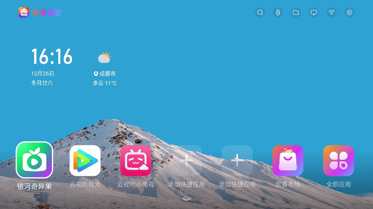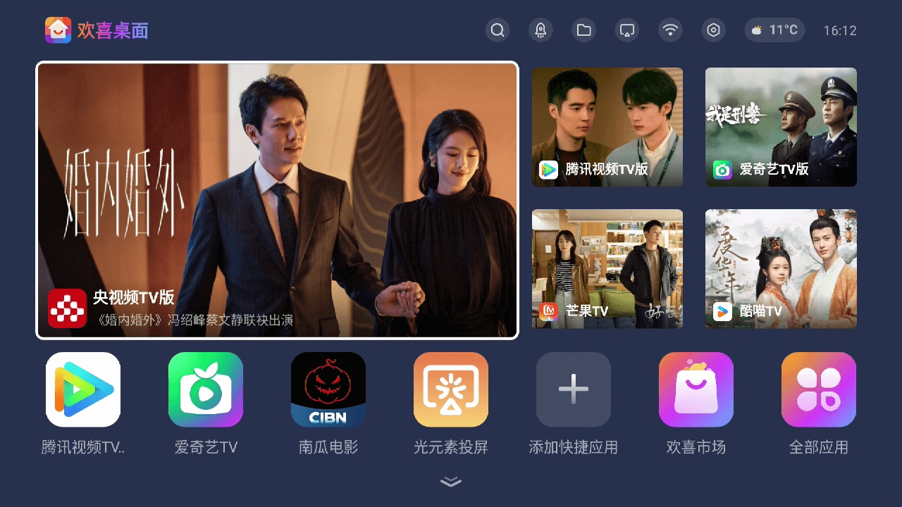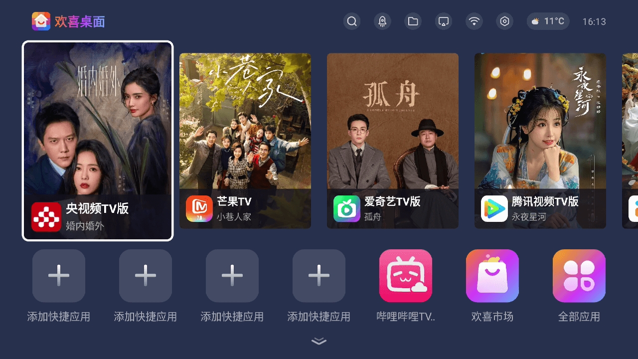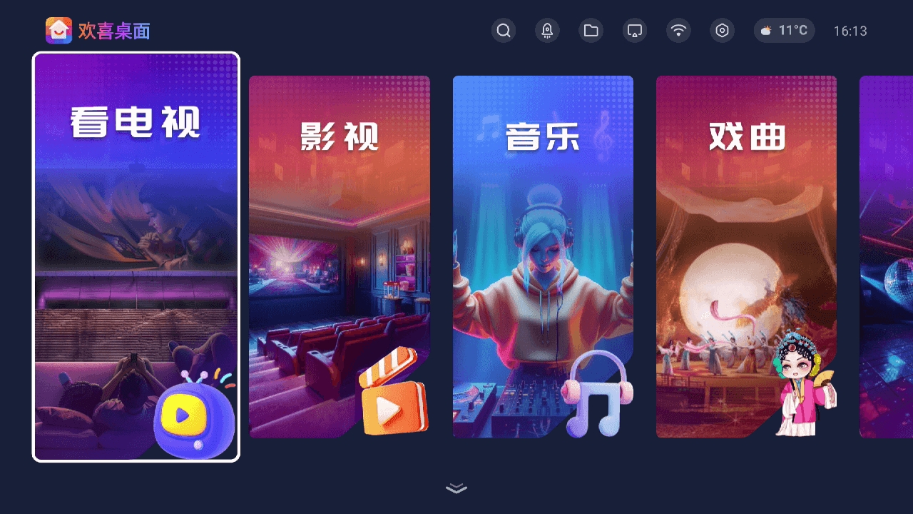 欢喜桌面是一款专为电视用户设计的桌面管理软件,在游戏里面用户可以在这里面不断的进行更多的桌面的壁纸的更换的,让你可以定制专属的电视桌面,还能适配不同的风格,兼容性强劲,更备丰富屏保资源任您下载应用。