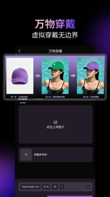 在万物穿戴页面能够上传图片,接着把图片添加至穿戴参考库,从而进行生成操作。