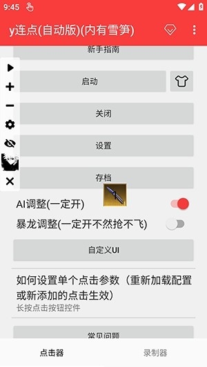 3、具备了点击、滑动、长按、双击等挂机功能,轻松实现一键启动和关闭。
