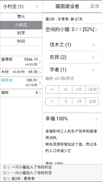 5.跟着木头的删减,能够制藏书楼。摆设猫咪当科教家,得到科技面。