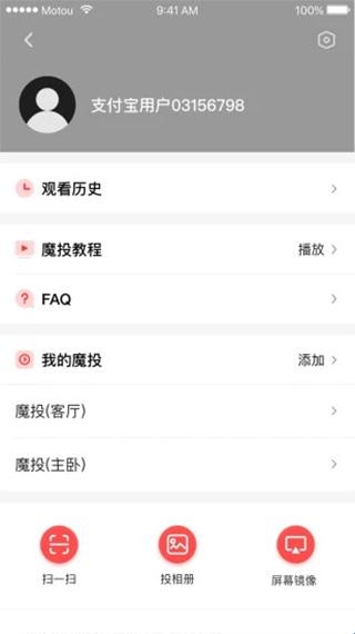 1、在底部导航栏点击【我的】,进入对应页面,可查看魔投相关功能选项,为设备连接做准备。