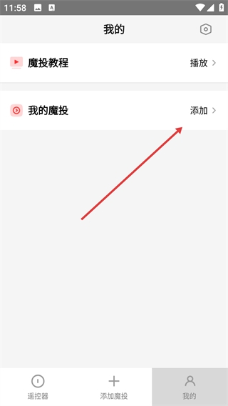 2、在【我的】页面找到【我的魔投】选项,点击右侧【添加】,进入魔投添加流程的操作界面。