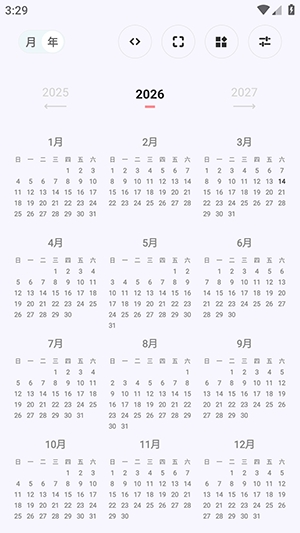 2、点击顶部“年”或“月”标签,切换至年度视图,方便查看全年日期分布及节假日安排,提升时间管理效率。