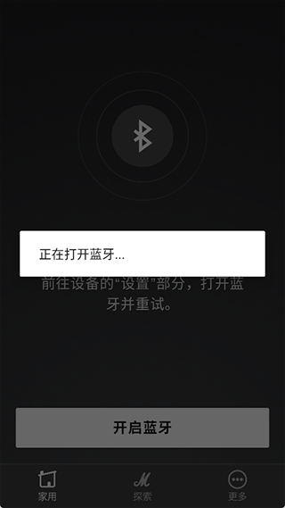 1、打开手机和马歇尔相关蓝牙设备的蓝牙功能,然后进入app中点击【开启蓝牙】