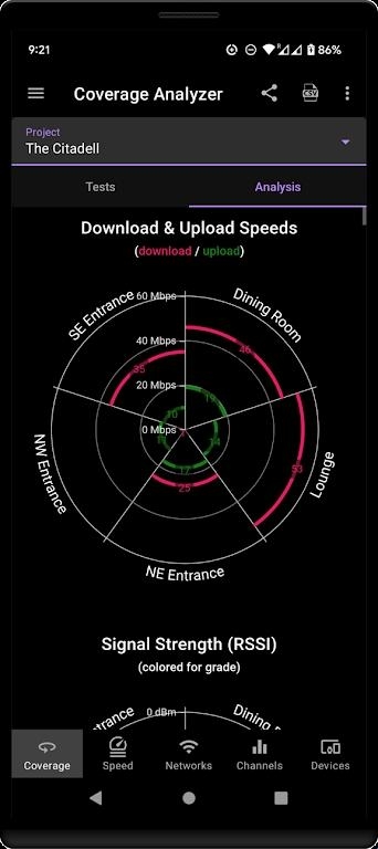analiti是一款比较强大的网络测试分析工具,在这里可以查看你的wifi链接了多少个设备,用户可以实时查看当前网络的实际传输性能,支持显示 WiFi信号覆盖范围,功能实用且针对性强。