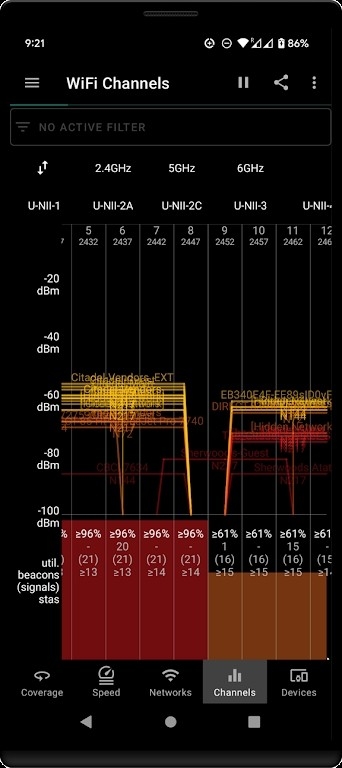 4、它显示了每个频道的相对强度,这是任何好的WIFI分析仪的典型特征!